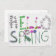 Inspirado por uma das nossas estações favoritas, este cartão-postal é impresso com um design desenhado à mão, com a primavera, com as palavras "HELLO PRIMAVERA" escrito numa variedade de flores e plantas coloridas.