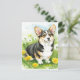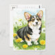 Cartão postal de primavera com Corgi Fofo e Dente-de-leão para Postcrossing
