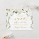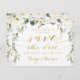 Cartão postal de anúncio de casamento rústico de peônias brancas e folhagens prateadas.