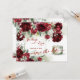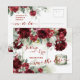 O conjunto definitivo de convites de casamento com aquarela floral. Uma garrafa vintage de luxuriantes peônias vermelhas profundas, entre folhas prateadas de verde aquarela e borrifos de delicada arte floral. Adicionar um fundo de papel kraft pode dar um visual rústico vintage a este convite.