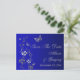 Este cartão postal de salvar a data floral azul real, azul naval e cinza prateado tem borboletas e flores que combinam com o convite de casamento mostrado abaixo. Se você precisar de outros itens correspondentes neste design, envie um e-mail para o seu pedido para niteowlstudio@gmail.com.