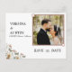 Cartão postal de salvar a data floral com foto preta. Este cartão postal de anúncio de salvar a data com foto elegante e sofisticado apresenta belas flores silvestres pintadas à mão em aquarela dispostas em um lindo buquê perfeito. Encontre itens correspondentes na Coleção de Casamento Boho Wildflower.