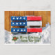 Cartão postal de Natal Patriótico e Ano Novo, representando a bandeira dos EUA pintada num pedaço de madeira na neve. Encontrei e fotografei-o no mês de dezembro numa pequena aldeia em Montana. O texto diz "Feliz Natal e Feliz ano novo", totalmente personalizável e o cartão é dentro vazio.