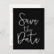 Cartão postal de SAVE THE DATE em Script Moderno Preto e Branco.