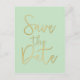 Cartão Postal de SAVE THE DATE em Verde-Menta & Dourado com Fonte Moderna.