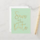 Cartão postal de SAVE THE DATE em Verde-Menta e Dourado com Letra Moderna.
