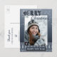 Um modelo de cartão postal de foto de suéter feio com Feliz Natal e votos de um Feliz Ano Novo. O design mostra um padrão azul marinho com luzes de flocos de neve cintilantes. Ótimo para uso pessoal e também para fins corporativos para dizer Obrigado aos clientes.