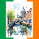 Celebrar o rico patrimônio e o entusiasmo vibrante de Dublin, Irlanda, com este cartão postal de aquarela.