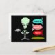 Um Cartão-postal concebido para apreciar o fascínio cultural do século Médio com OVNIs. Uma alienígena, mãos sobre quadris, está tentando decidir qual lugar visitar no cartaz do foguete!! Os lugares listados no Sinal de Foguete Retroativo são modelos para que você possa alterá-los de forma a incluir seu lugar favorito de "observação" de OVNI. A parte de trás deste cartão postal também tem uma seção modelo que pode ser alterada para qualquer documento que você quiser neste cartão postal. Antes de fazer o pedido, leia o cartão postal de exibição, frontal e traseira, para ter certeza de que tudo o que você deseja está correto. O que você vê no cartão-postal de exibição é o que será impresso. Obrigado por visitarem!