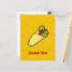 Ilustração de desenho animado de wrap de sanduíche de tortilha. Ícones de contorno de junk food em padrão amarelo ao fundo. Texto personalizado.