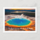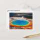 Cartão postal é mostrado com uma bela foto impressa do grande pote termal quente prismático em Yellowstone National Park.