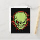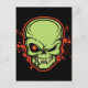 Crânio de monstro verde com presas amarelas e pêlos crus vermelhos no seu olho de mau. Com um contorno vermelho e um espalhamento. T-shirts, capuzes, cartas, presentes.