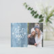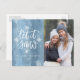 Deseje Feliz Natal aos seus amigos e familiares com nosso cartão postal de foto de férias Deixe Nevar. O cartão postal de férias apresenta Deixe Nevar em uma escrita à mão rodeada por flocos de neve contra um fundo de aquarela azul de inverno. Personalize a frente do cartão adicionando seu nome, o ano atual e sua foto favorita. O verso exibe seu endereço de retorno e mensagem personalizada.