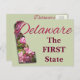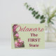 Em 1953, o Peach Blossom foi chamado de Flor Estadual de Delaware. O Flor de Pêssego simboliza a longevidade ou o desejo de vida longa, a doçura da vida e a vida amorosa. No final da década de 1800, os pomares de pêssego de Delaware continham quase um milhão de pessegueiros, produzindo uma safra que valia milhares de dólares naquela época. Apesar de muitos de nós pensarmos na Geórgia ou na Carolina do Sul, a dada altura, Delaware era conhecido como o "Estado Pêssego". Infelizmente, na última parte do século XIX, um flagelo provocou o colapso da indústria e, no início da década de 1900, muitos agricultores de pêssego enfrentaram a falência. Na Carolina do Norte, não estamos nem de perto tão ao norte como Delaware e temos cerca de 20 pessegueiros na propriedade. Eles têm cerca de cinco ou seis anos e ainda temos de colher o primeiro pêssego. No nosso caso, primaveras falsos só provocariam o surgimento precoce de ter um matar de gelo subsequente a qualquer fruta em desenvolvimento. Embora ainda tenha esperança, passei a considerar as nossas árvores "ornamentais". Mas esta design não é apenas uma homenagem aos pêssegos ou às suas flores, mas também presta homenagem ao nosso PRIMEIRO Estado, Delaware. É bonito distintivo, sendo o primeiro estado oficial dos Estados Unidos. Em termos de tamanho, Delaware é o 49º maior (de 50) ou o segundo menor estado da união. Nas bordas externas, Delaware tem 96 milhas de comprimento e 35 milhas de largura. Embora geograficamente pequeno, Delaware deu a este país muitos presentes e muitas pessoas famosas. Embora nascer na Pensilvânia, o ex-vice-presidente Joe Biden gritou de Delaware. O filho de Bob Marley, Stephen, foi nascer em Wilmington, assim como a atriz Elisabeth Shue e a atriz Valerie Bertinelli. Este design, encantador, celebrando o PRIMEIRO estado oficial dos Estados Unidos, oferece um esboço do estado de Delaware, recheado de suas flores estaduais, adorável Peach Blossoms. Estes cartões postais deliciosos podem ser comprados antes das suas férias, para que você não perder tempo procurando por eles e possa se concentrar em toda a beleza ao seu redor. Par com os selos de correio correspondentes para uma apresentação ainda mais impressionante.