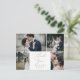 Este delicado modelo de 4 fotos em ouro para cartão postal de agradecimento é perfeito para um casamento moderno. O design romântico minimalista apresenta uma tipografia adorável e elegante na cor amarelo dourado champanhe sobre um fundo branco com uma aparência limpa e simples. Personalize o verso do cartão postal com seus nomes, seu endereço de retorno e uma mensagem de agradecimento. Alternativamente, deixe a seção do modelo de mensagem de agradecimento em branco para escrever à mão uma nota personalizada e atenciosa em cada cartão após eles chegarem.