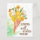 Modelo de cartão postal com votos de Taraxacogo pensando em você. Conjunto de Taraxacogos florescendo, Taraxacogos com sementes, uma pequena borboleta em um cone de sorvete de waffle.