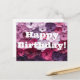 Cartão Postal desenho de flores rosa e roxo com votos de feliz a
