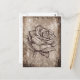 Rosa delicado desenhado de preto num fundo rústico em produtos de festa e favores.
