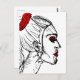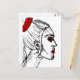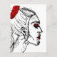 Design de uma mulher no estilo dos esboços de modelos. Preto e branco com realces vermelhos, originalmente desenhados com caneta no papel.