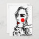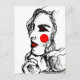 Design de uma mulher no estilo dos esboços de modelos. Preto e branco com realces vermelhos, originalmente desenhados com caneta no papel.