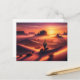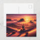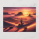 Experimente a beleza impressionante do deserto ao anoitecer. Este cartão-postal captura as matizes quentes do sol de pôr, lançando um ouro brilhando sobre grandes dunas de areia e formações rochosas. Os cactos Silhuetted erguem-se altos contra o céu colorido, que mistura sombras de laranja, rosa e roxo. Perfeito para aventureiros do deserto, amantes da natureza, e aqueles capturados pela magia do crepúsculo em paisagens áridas.