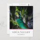 Cartão postal da Garganta de Tolmin com penhascos íngremes cobertos de musgo e água azul magnífica no Vale de Soca, perto de Kobarid na Eslovênia com uma caixa branca com o texto 'Vale de Soča, Eslovênia' e linhas em branco, azul e vermelho, as cores da bandeira eslovena.