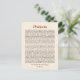 As palavras atemporais de conforto, encorajamento e sabedoria da Desiderata de Max Ehrmann tornam um cartão postal que é significativo e atraente. O texto é impresso em marrom escuro e vermelho profundo contra um fundo pálido semelhante a pergaminho. Envie para um amigo ou exiba como uma obra de arte miniatura.