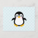 Cartão Postal Design azul-Bolinhas-pinguim-branco Fundo