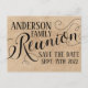 Design de reunião da família de design de cartão de reunião, personalize o texto, também no verso.Inscrição criativa, fundo de papel de pergaminho.