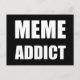Conhece pessoas que obsessivamente varrem a internet por memes, memes e mais memes? Talvez você conheça pessoas que as criam? Ou você os cria? Conte ao mundo sobre este vício! Este cartão postal tem um fundo preto, com texto branco que diz, "Viciado em Meme." Pegue alguns deles hoje!