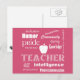 Um cartão postal de excelente para o Professor que apresenta uma nuvem de palavras ou um design de texto em branco sobre um fundo cor-de-rosa (você pode personalizar cores, mas eu farei mais algumas) preenchido com os atributos de um educador de excelentes! Também tem uma maçã...para o professor!