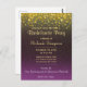 Convite de despedida de solteira moderno e elegante com confetes glitter dourados e um fundo roxo e dourado. Você pode personalizar facilmente o texto para qualquer ocasião. Veja mais em zazzle.com/GlitterInvitations Nota: Esta é uma obra de arte gráfica impressa e não há glitter desorganizado.