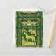 Fotografia de um tradicional carro cigano pintado com um cavalo de ouro sobre fundo pintado verde, fotografado na feira de cavalo Appleby, em Cumbria, Inglaterra, onde ciganos se reúnem todos os anos.