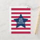 Cartão Postal Nota de Saudação Postal Cartão Postal impresso com a letra "Deus Abençoe a América" em Vermelho Branco e Azul e desenho de listras feito por TheFabricSeal em Zazzle.com #ZazzleMade TheFabricSeal Original.
