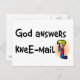 Deus responde às orações através de mensagens do joelho, item de presente religioso. Garotinho ajoelhado para rezar para Jesus.
