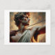 Uma figura forte e clássica almeja uma flecha com foco intenso, capturando a essência do mito antigo. A luz quente acentua sua forma muscular e sua pose dramática, transmitindo um sentido de poder e concentração.