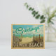 Esta design do cartão postal de Dewey Beach apresenta uma praia arenosa com uma bela água turquesa oceânica e acima do mar, um céu azul com nuvens brancas e onduladas. No estilo viagens vintage.