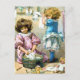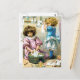 Ilustração bonita de duas meninas, ocupadas lavando a roupa da boneca numa banheira de madeira e pendurando-as na linha de roupas para secar. Trabalho da equipe de excelentes!