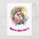 Cartão postal dia de as mães com ilustração de uma mãe com o seu filho em cores vibrantes, rodeada por um cartão elegante de rosa Elegante, com Dia de as mães floral, no fundo do design. "Lar é onde a mãe está" aparece na frente com caligrafia rosa moderna. Na parte de trás do cartão, um poema para a ocasião do Dia de as mães e uma ilustração de um grande coração no centro, e dois pequenos corações à esquerda. Abaixo de um desejo "Feliz Dia de as mães Mãe" e abaixo do autor da mensagem.