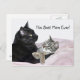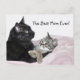 Tabby kitten se enrolou com um cartão postal de foto de gato preto proclamando "A Melhor Mãe de Todos!". O texto pode ser alterado ou removido com o botão PERSONALIZAR.