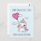 A design apresenta um unicórnio bebê bonito segurando um balão em forma de coração. Torne-o seu próprio, adicionando o seu texto (e fotografias pessoais). Para acessar ferramentas avançadas de edição, vá para "Personalizar", role para baixo e pressione o link "clicar para personalizar mais".
