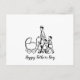 Uma imagem retrô preta e branca de um pai andando com seus filhos e empurrando um bebê buggy. Saudação: Feliz Dia de os pais. Imagem do Vintage Printers Book (Livro de Impressoras Vintage), de 1940 (sem direitos autorais).