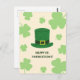 Mande cumprimentos festivos com esta Rua. Cartão postal do Dia de Patrick com um clássico chapéu de duende rodeado de sortudos. Uma forma perfeita de celebrar o feriado e partilhar a alegria irlandesa com a família e os amigos. Ideal para convites de festas, saudações sazonais ou guardas decorativos.
