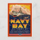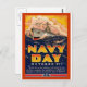 Poster vintage comemorando o dia 27 de outubro como Dia do Marinho. Poster tem borda vermelha, destruidor que corta as ondas com os aviões em cima, as palavras "Dia do Marinho" em amarelo a vermelho
