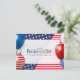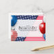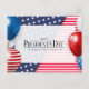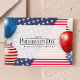 Este cartão postal vibrante é uma saudação patriótica ao Dia do Presidente, apresentando um design dinâmico de estrelas e listras no vermelho, branco e azul da bandeira americana. A frente do cartão-postal é adornada com a declaração ousada "HELY PRESIDENTE'S DAY", centrada no topo, com a legenda "ESTADOS UNIDOS DA AMÉRICA" logo abaixo, ambas colocadas num pano de fundo de padrões estrelados e faixas horizontais. A mensagem comemorativa é de dois balões, um em azul e outro em vermelho, dando ao cartão-postal uma sensação festiva. Este design capta o espírito do feriado, fazer-o como uma escolha perfeita para enviar saudações ao Dia do Presidente ou para ser usado como convite para um evento temático.