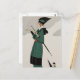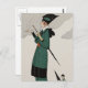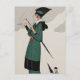 Vintage à moda europeia de uma revista francesa de mulheres. Uma mulher moda para passear enquanto percebe que está começando a chover.