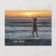Um cartão-postal encorajador mostrando uma maçarica de golden saltando para cima para pegar uma bola em frente a um pôr do sol da praia. O texto diz Live Large e pode ser modificado.