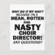 Porque É Que É Assim? Porque sou um diretor de Coro Malvado, Rotten e Nojento! Alguma Pergunta? Às vezes é hora de acabar a discussão e fazer as coisas do seu jeito!