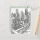 Este cartão-postal viagem, em estilo desenhado à mão, mostra o horizonte de Boston.