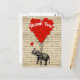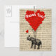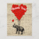 Um cartão de agradecimento romântico divertido, com um elefante vintage fofo e balões em forma de coração de amor.